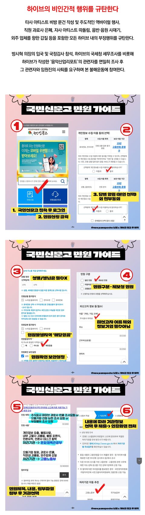 주식회사 하이브 과로사 은폐 조사 요청 및 으뜸기업 선정논란 조사 요청