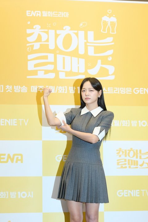 배우 김세정이 4일 오후 서울 상암동 스탠포드 호텔에서 열린 ENA 새 월화극 ‘취하는 로맨스’ 제작발표회에 참석해 포즈를 취하고 있다. 사진 스튜디오 지니