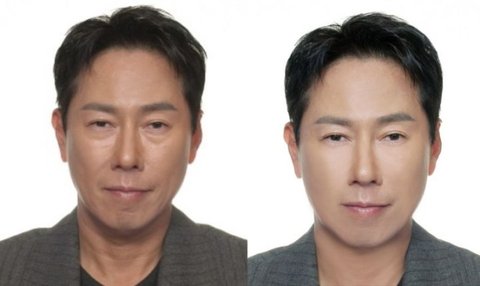 윤종신은 4일 본인 소셜미디어에 "사진관 사장님의 마술. 비포(before)&애프터(after)"라고 적고 2장의 사진을 게재했다.