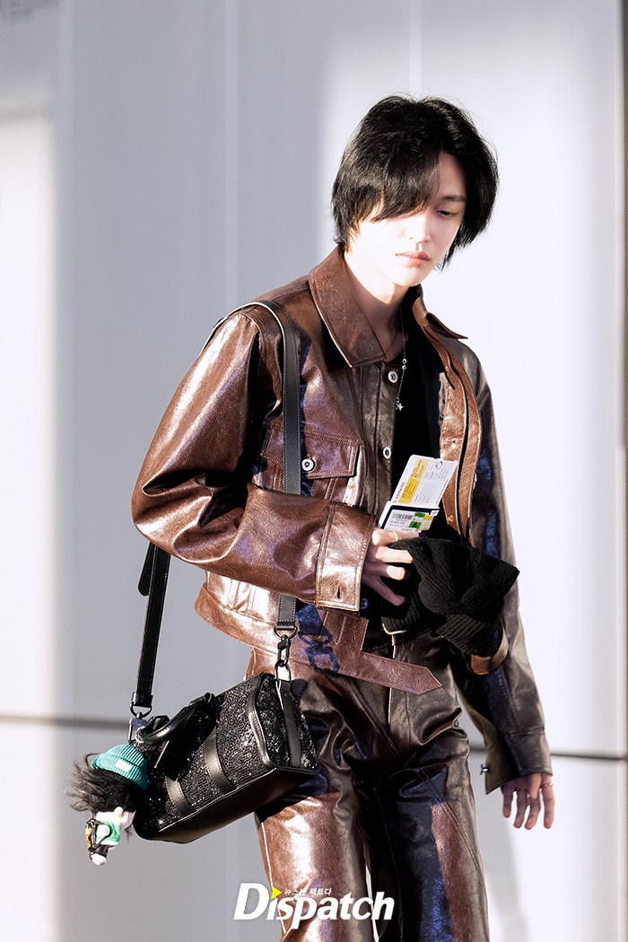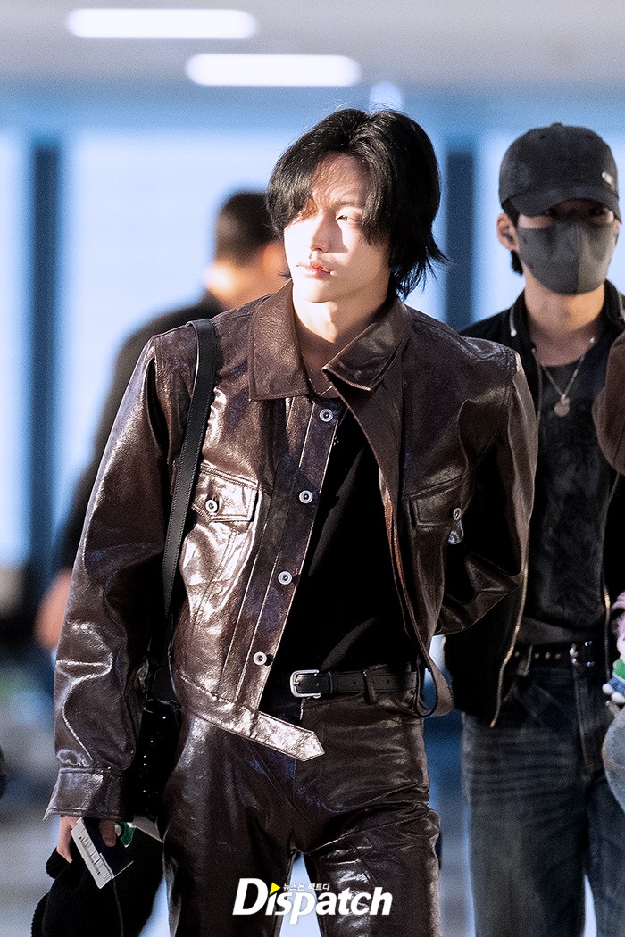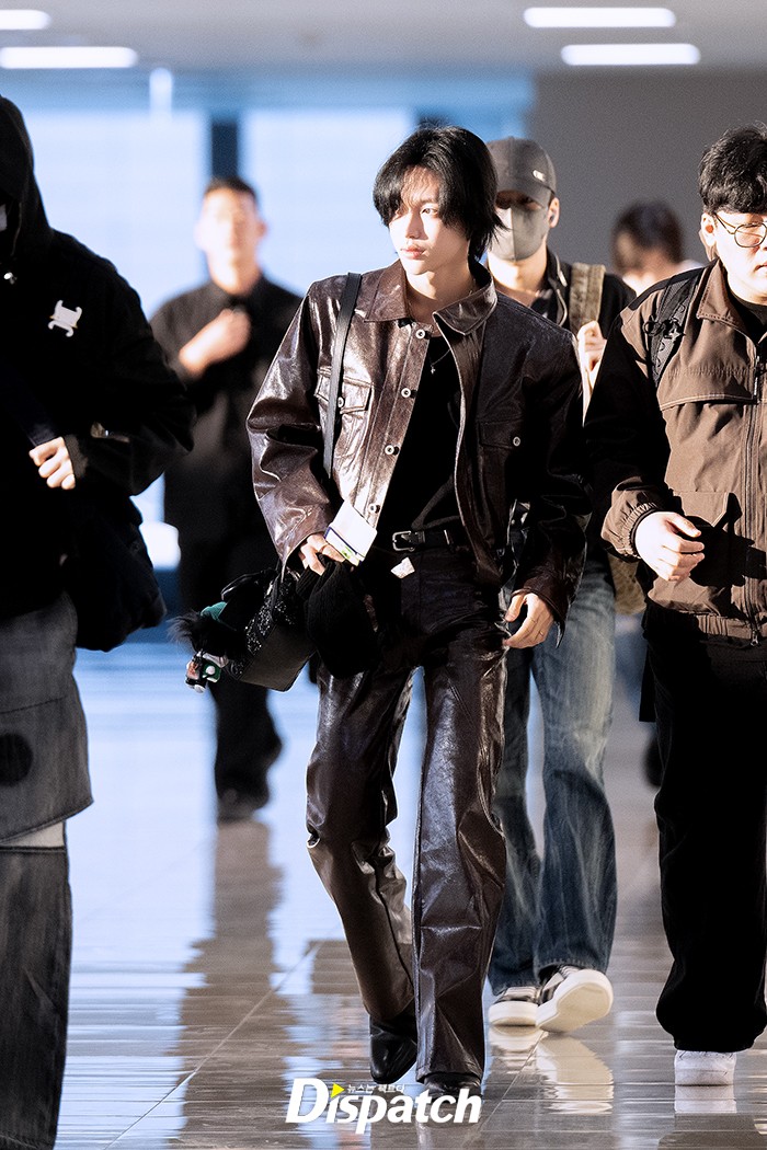 원빈은 레더 팬츠와 재킷으로 시크한 공항패션을 연출했다. 훈훈한 비주얼이 돋보였다.
