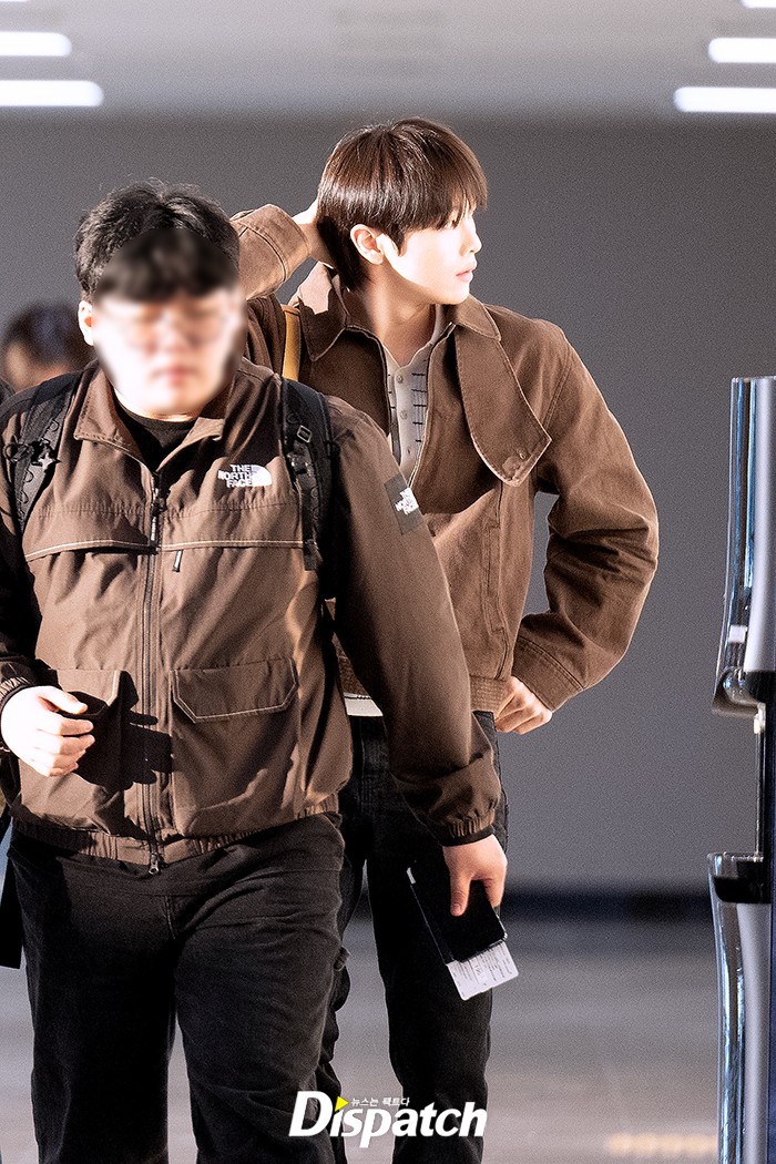 성찬은 블랙 데님에 브라운 재킷으로 시크한 공항패션을 연출했다. 훈훈한 비주얼이 돋보였다.