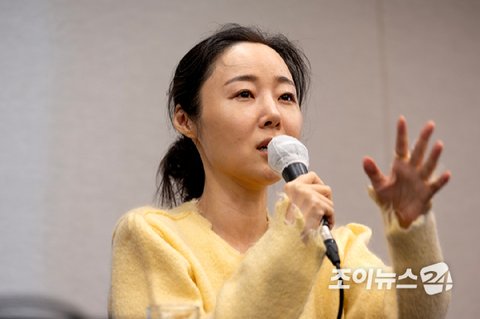 하이브와 갈등 중인 민희진 어도어 대표가 25일 오후 서울 강남구 한국컨퍼런스센터에서 긴급 기자회견을 갖고 있다. [사진=정소희 기자]