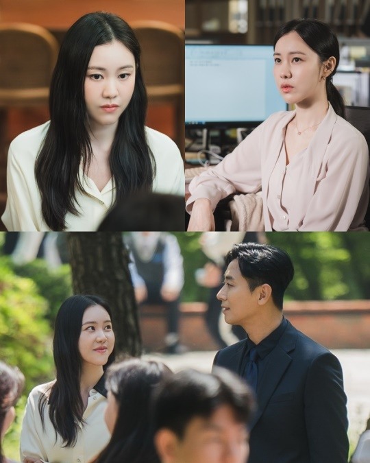 하지만 차지혜가 반전 매력을 선보이는 유일한 순간이 바로 짝사랑하는 석지원 앞. 또 다른 스틸 속 차지혜는 석지원과 교정을 거닐며 이야기꽃을 피우고 있는데, 항상 까칠한 냉미녀 모드를 유지하고 있던 차지혜가 석지원 앞에서는 환한 미소를 감추지 못하고 있다. 이런 차지혜에게도 오랜 짝사랑을 끝낼 절호의 기회가 찾아올지 궁금증을 높이는 가운데 앞으로 차지혜가 ‘18년 지기’ 석지원, 윤지원과 형성해 나갈 아슬아슬한 케미가 주목된다.