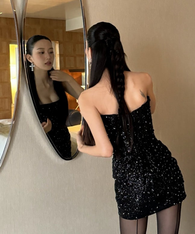 문가영은 비즈 장식이 돋보이는 오프숄더 미니 드레스를 입고 늘씬한 몸매와 여신 같은 비주얼을 자랑했다. 특히 문가영은 남다른 볼륨 몸매를 드러내 보는 이들의 눈길을 끌었다.
