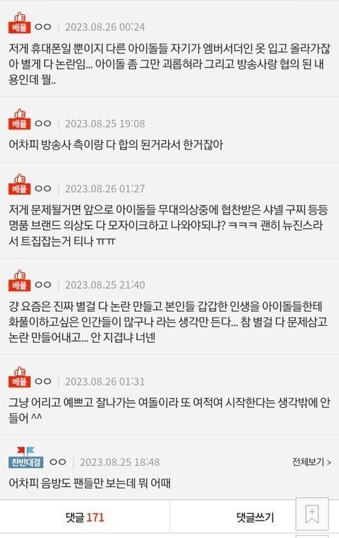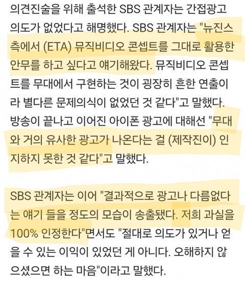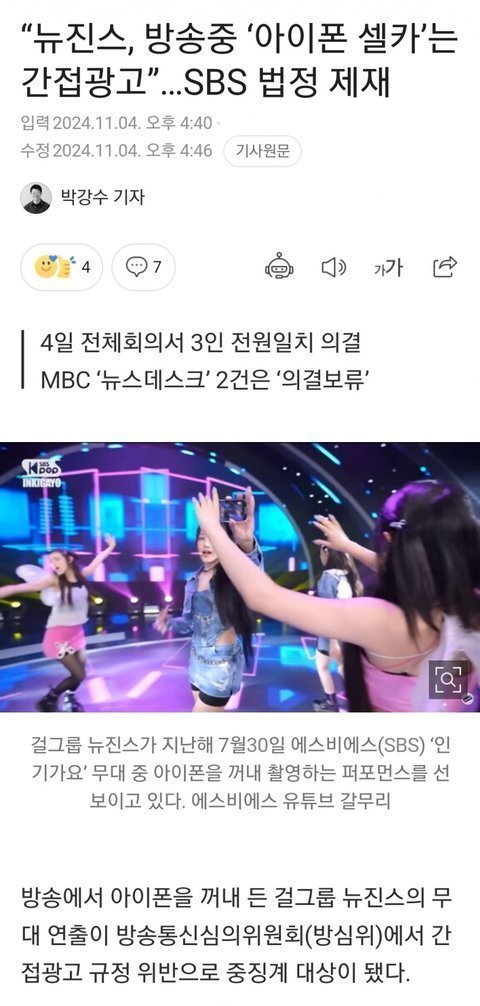 스브스가 주의조치 받은거랑 뉴진스랑 뭔 상관... 주의조치 받은것도 저 무대뒤에 아이폰 광고 바로 나온게 문제 된건데 무대자체는 로고도 다 가리고 나왔고