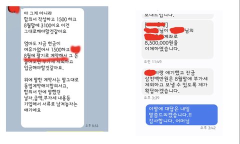 가게 명의를 가진 지인 어머니도 8월 말 나머지 금액도 보내주겠다며 약속을 해주셨습니다.