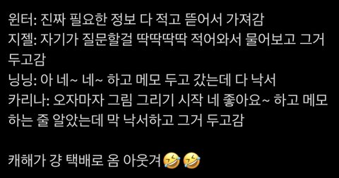 윈터가 그 회사랑 계약할 것 같다고 하니까 한 번 더 오디션을 보러 오라고 함