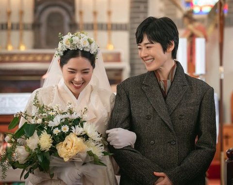 무엇보다 화려한 부케와 새하얀 한복으로 치장한 신부의 옆자리에 신랑 대신 옥경이 서있어 눈길을 끈다. 여성 팬은 옥경의 팔짱을 낀 채 함박웃음을 터뜨리고 있고, 이에 옥경 역시 환한 미소로 화답하는 모습. 마치 1950년대 인기 국극 배우 조금앵의 실화로 알려져 있는 팬과의 '가상 결혼식' 순간을 보는 듯 이색적인 투샷이 흥미를 높인다. 이에 현재의 아이돌 팬덤 못지 않은 인기를 누린 그 시절 국극 스타들의 모습을 재조명하며 화제를 모으고 있는 '정년이'가 담아낼 생생한 에피소드에 기대감이 고조된다.
