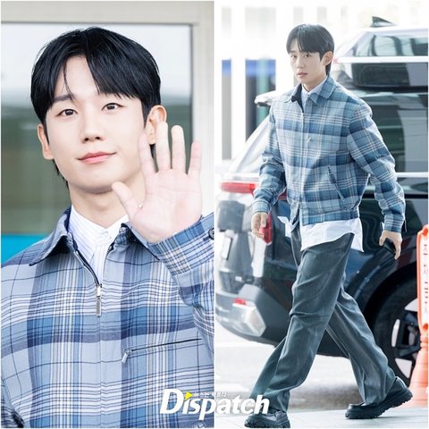 정해인은 체크 미니멀 재킷과 그레이 팬츠로 멋을 냈다. 잘생긴 비주얼이 돋보였다.