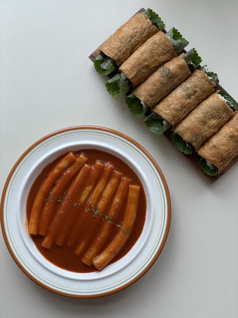 7. 신전떡볶이 스타일의 떡볶이와 유부초밥