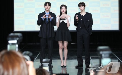 (서울=뉴스1) 권현진 기자 = 배우 최건(왼쪽부터)과 강나언, 김우석이 29일 서울 강남구 일지아트홀에서 열린 웹드라마 '0교시는 인싸타임'(극본 고이찬 / 연출 배하늘) 제작발표회에 참석해 포즈를 취하고 있다.