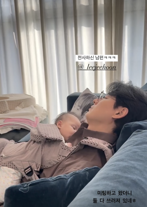 공개된 사진은 소파에서 잠든 이지훈과 딸의 모습. 두 사람은 달콤한 잠에 취해있다. 특히 이지훈의 품 안에서 새근새근 잠이 든 딸의 귀여운 모습이 눈길을 끈다. 사진을 본 팬들은 ‘쪽잠이 원래 제일 달죠’ ‘육아대디 파이팅’ ‘아이고 안쓰러운데 보기 좋아요’ 등의 다양한 반응을 보였다.