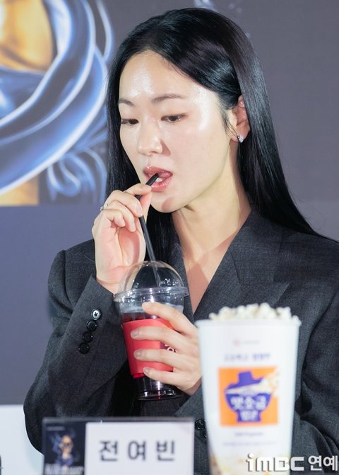 배우 전여빈이 6일 오후 서울 여의도CGV에서 열린 ‘제45회 청룡영화상’ 핸드프린팅 행사에 참석해 홍초를 마시고 있다.