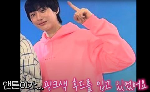 앤톤이 굉장한 핫핑크 후드를 입고 있어서