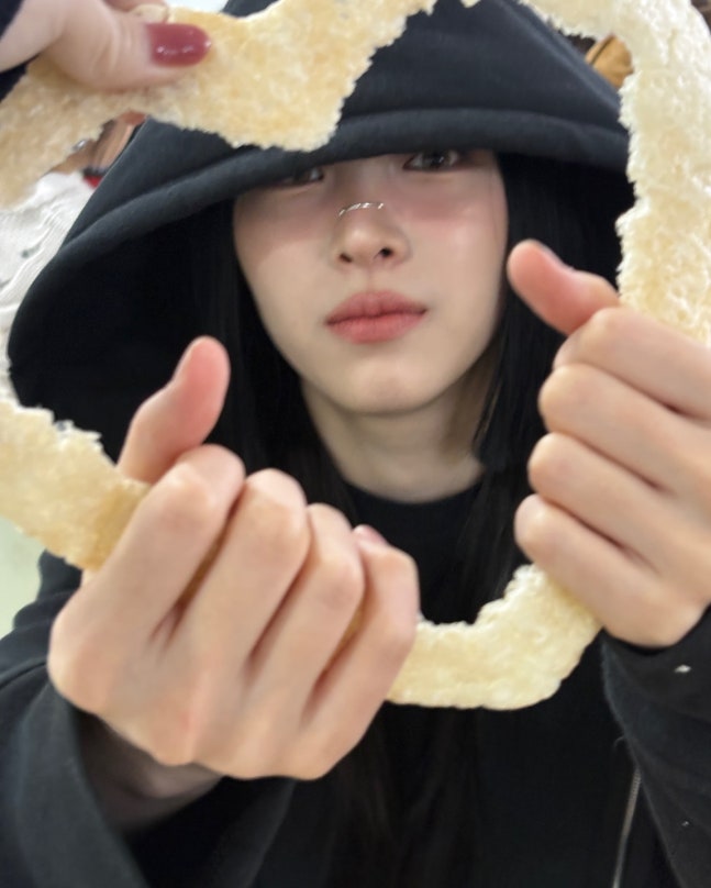 뻥튀기를 하트 모양으로 뚫어놓고 이를 입에 문 류진의 모습을 카리나가 찍은 것으로 보이는데, 이를 본 류진은 "뻥티기 파기 장인 자격 박탈"이라는 댓글을 남겼다.