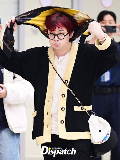 지드래곤은 스카프를 머리에 두른 채 입국장을 나섰다. 블랙 컬러의 가디건과 와이드진으로 연출한 세련된 공항패션도 돋보였다.