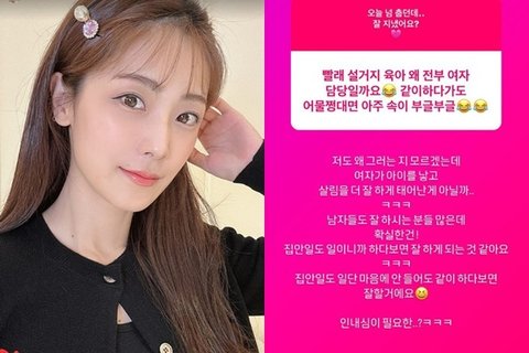 한 누리꾼이 "빨래 설거지 육아 왜 전부 여자 담당일까요. 같이 하다가도 어물쩡대면 아주 속이 부글부글"이라는 글을 남기자, 소율은 "저도 왜 그러는지 모르겠는데 여자가 아이를 낳고 살림을 더 잘하게 태어난 게 아닐까 남자들도 잘하시는 분들 많은데 확실한 건 집안일도 일이니까 하다 보면 잘하게 되는 것 같아요. 집안일도 일단 마음에 안 들어도 같이 하다 보면 잘할 거예요. 인내심이 필요한?"이라고 답해 공감을 표했다.