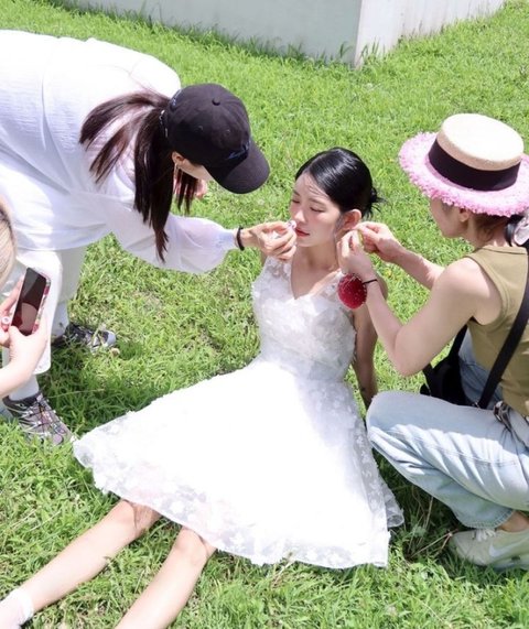 사진 속 최준희는 웨딩 드레스를 입은 채 메이크업을 받고 있는 모습이다.