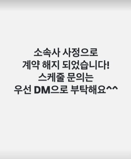 사진=간미연 SNS7일 간미연은 자신의 인스타그램 스토리를 통해 "소속사 사정으로 계약 해지 되었습니다! 스케줄 문의는 우선 DM으로 부탁해요"라는 글을 올렸다.