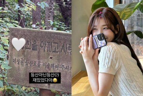 공개된 사진에는 푸릇푸릇한 산의 풍경과 함께 등산로 안내판이 담겼다. 율희가 기분전환을 위해 등산에 나섰다가 인증샷을 찍어 올린 것으로 보인다.