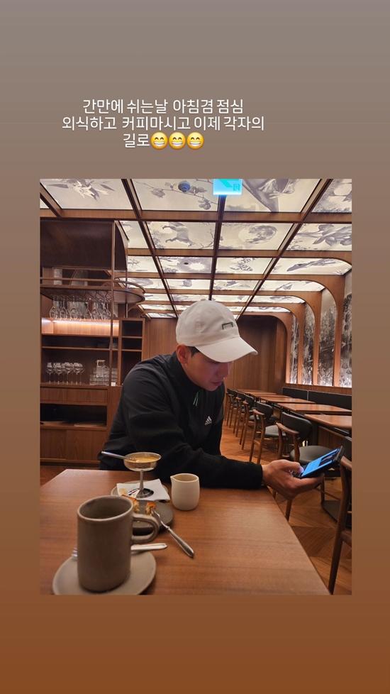 8일 한영은 "간만에 쉬는 날 아침 겸 점심, 외식하고 커피 마시고 이제 각자의 길로"라는 글과 함께 배우자 박군의 사진을 공유했다.