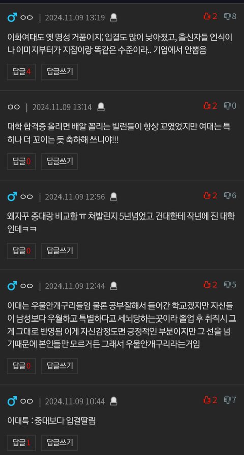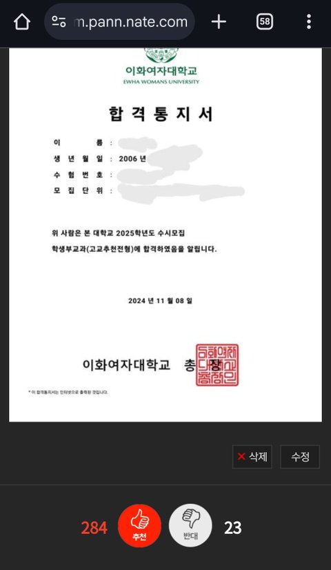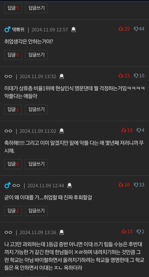 와씨 ㅁㅊ 난 이대 붙었으면 ㅈㄴ 기뻐서 저딴 악플들도 눈에 안 들어올 듯 저런 새ㄲ들하고는 상종 ㄴㄴ 합격 축하해 ㅜㅜ 이순간을 즐겨 이대 다니는 내 친구들 진짜 재밌게 다니더라 캠퍼스도 넘 이쁘고ㅠㅠ