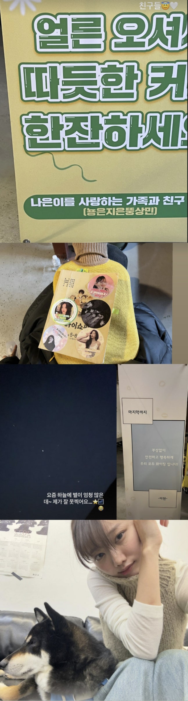 이나은은 이와 함께 가족, 친구들로부터 받은 커피차도 인증하며 "나도 너무나도 사랑하는 가족, 친구들"이라며 응원해 주는 모든 이들에 대한 고마움을 전했다.