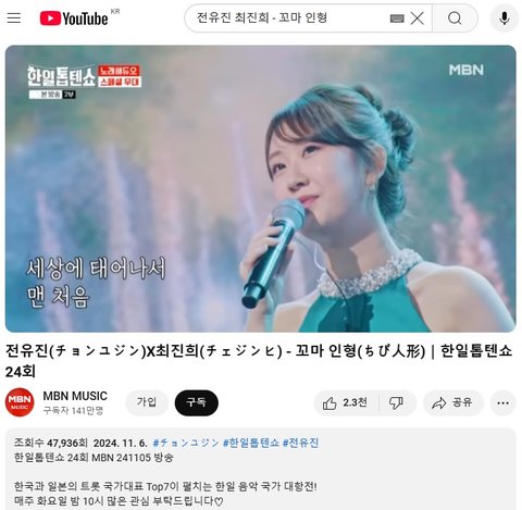 (사진3 설명) 전유진(チョンユジン)X최진희(チェジンヒ) - 꼬마 인형(ちび人形)|한일톱텐쇼 24회