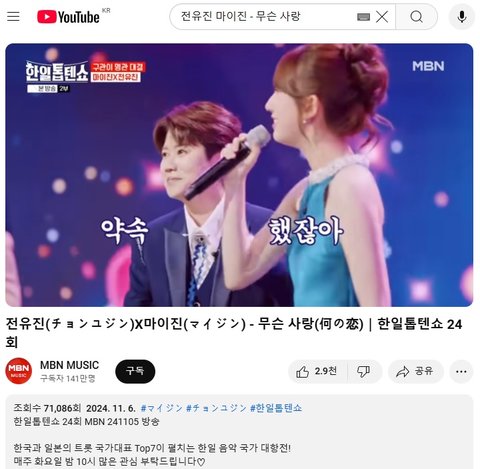 (사진4 설명) 전유진(チョンユジン)X마이진(マイジン) - 무슨 사랑(何の恋)|한일톱텐쇼 24회