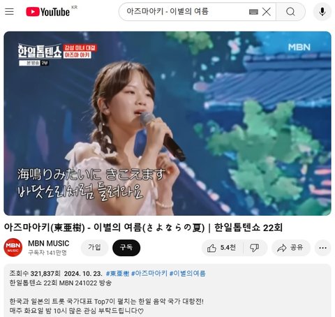 (사진6 설명) 아즈마아키(東亜樹) - 이별의 여름(さよならの夏)|한일톱텐쇼 22회