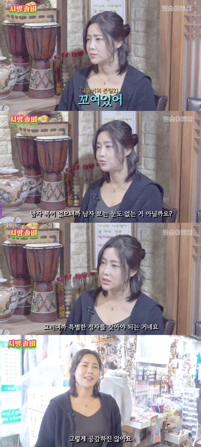 이에 솔비는 "그래서 항상 어깨가 무겁다"고 말했다. 명리학자는 "남자 보는 눈은 별로다. 사주가 까칠하다. 성격이 까칠하다. 정확한 거 좋아하고 남한테 피해주고 신세 지는 걸 딱 질색한다"라고 분석했다.