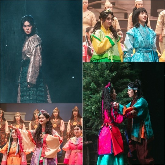 그런가 하면 무대 위 영서, 옥경, 혜랑, 주란의 모습을 담은 공연 실황 스틸 역시 흥미를 끌어올린다. '매란의 왕자' 옥경은 국극계의 황태자다운 포스로 무대를 압도하고, '매란의 공주' 혜랑 역시 해사한 비주얼과 남다른 자신감으로 히로인의 아우라를 뿜어낸다. 이와 함께 '바보와 공주'를 계기로 옥경과 혜랑의 후계자로 주목받을 영서와 주란 역시 반짝이는 존재감으로 주변을 밝힌다. 이에 여성국극계를 빛내 온 스타들과 떠오르는 스타들이 만난 '바보와 공주' 공연이 어떤 모습일지 귀추가 주목된다.