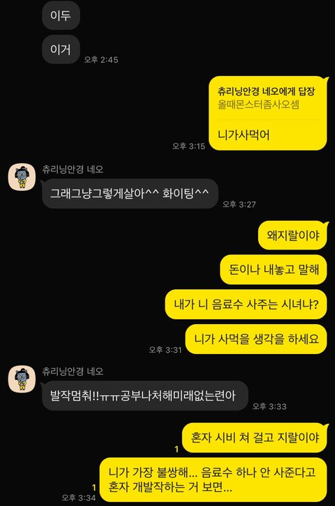 몬스터 음료수 하나 안 사줬다고 저럼 ㅋㅋ
