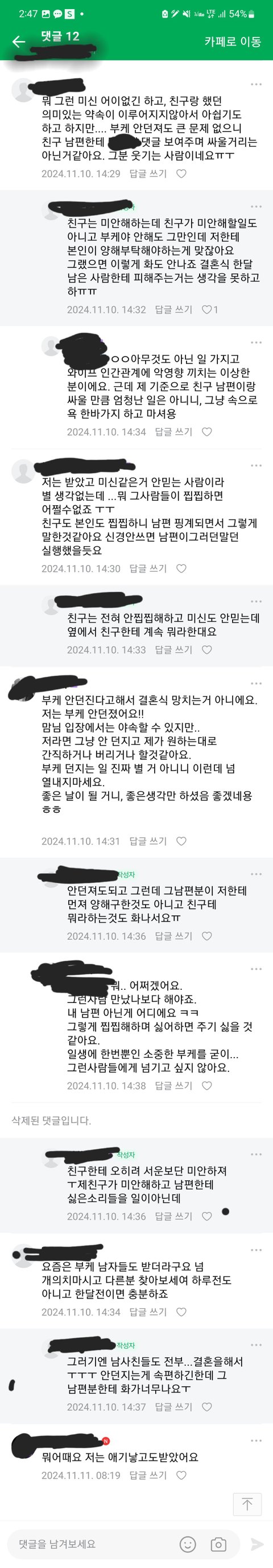 너가사과할일이냐 너가 왜미안해하냐 니남편이 미안할일이지 한거고