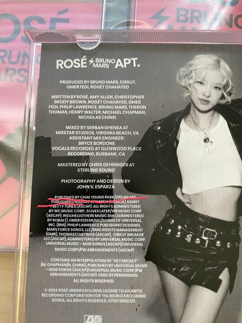 아파트에 대한 퍼블리싱이 로제에게 있으니 등록된듯 퍼블리싱은 출판물에 의한 저작권자로서의 권리인거고..암튼 법적으로도 똑소리 나네