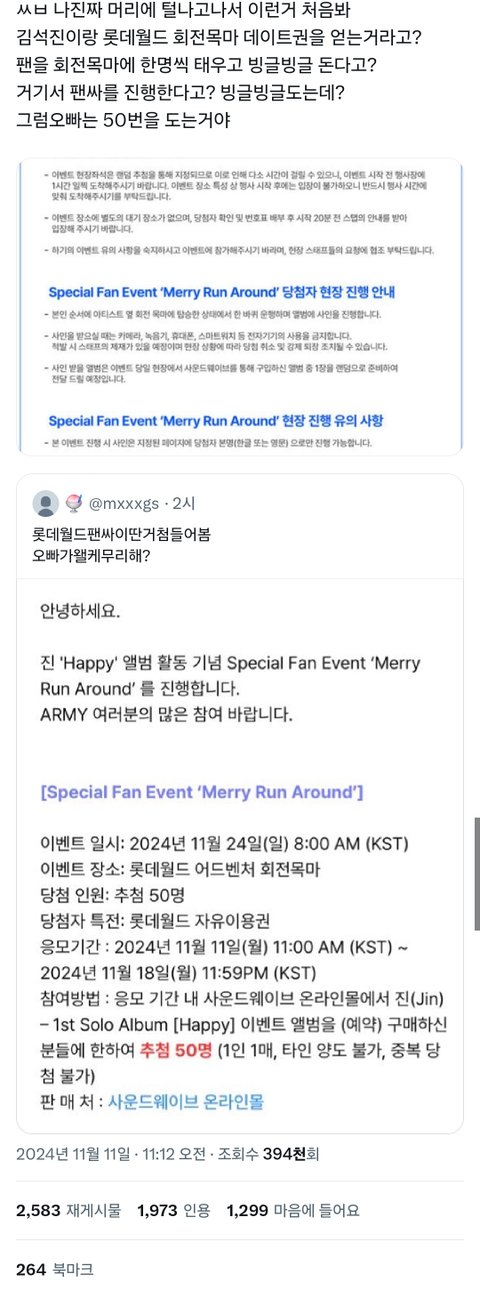 아이돌 사상 최초 회전목마 타면서 싸인회ㅋㅋㅋㅋ