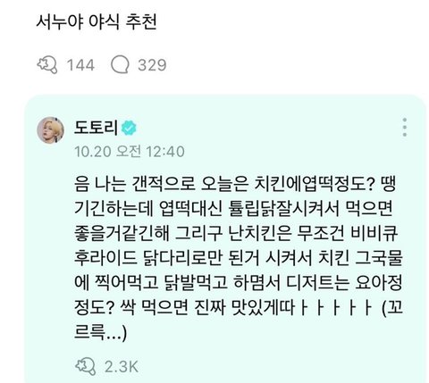 평소에도 팬들이랑 엄청 친근한 스타일임ㅇㅇ 근데 이제 먹는 얘기하면 실친 같은 느낌을 지울 수가 없음ㅋㅋ