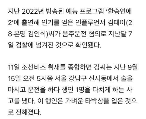환연2 김태이 음주운전 적발