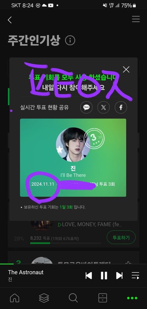 멜롱이랑 ma마랑 투표하자 그리고 후..나 당첨되었어 장충간다ㅠㅠㅠㅠ 8시 넘어도 안뜨길래 에이 미당인가보다했는데 방금 다시 확인해보니 됨 ㅠㅠㅠㅠ석지니 응원 열심히하구 후기 가져올게 ㅠㅠㅠ