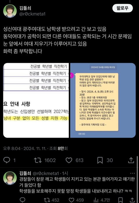 왜 이대숙대는 몇십년동안 이런목소리 하나도 안나오는데 지들만 나오는지 모르나봄 여대 가고싶으면 이대숙대 가라고 소리지르고싶다 정문앞에서