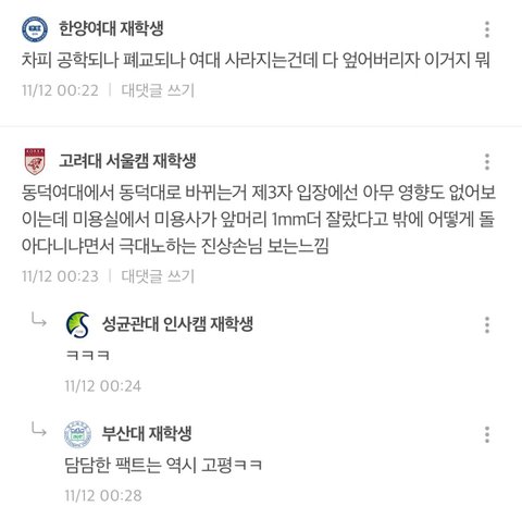 관심이 없으면 저런 글을 안썼겠지ㅋㅋㅋ관심 개많은듯 그리고 고대는 유구~하게 여대 ㅈ나 괴롭혀놓고 양심이 있냐??