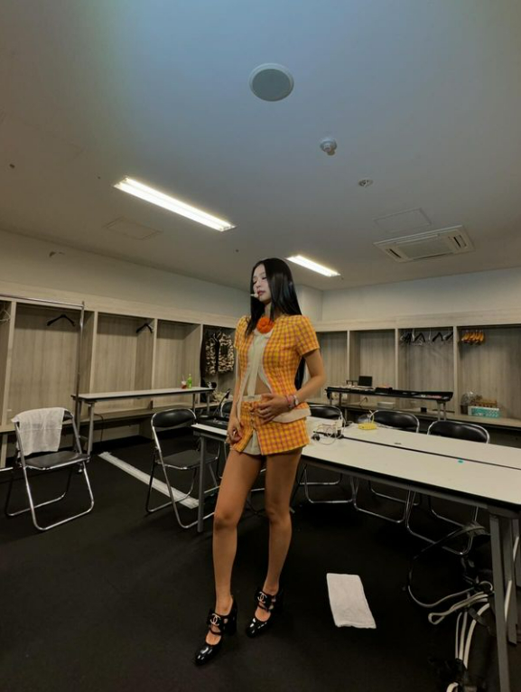 걸그룹 블랙핑크 멤버 제니가 노란체크 무늬 투피스를 입고 각선미를 뽐냈다. /사진=제니 인스타그램특히 제니는 미니스커트를 입고 완벽한 각선미를 뽐내 더욱 시선을 사로잡았다.제니는 지난 11일 일본 오사카에서 열린 첫 단독 무대에서 신곡 '만트라'를 선보였다.