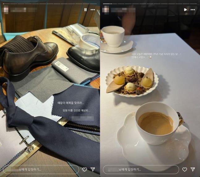 12일 남보라는 개인 소셜 미디어 계정에 “예랑이 예복 맞추러. 엄청 예쁠 것으로 예상”이라는 글과 함께 여러 장의 사진을 게재했다.