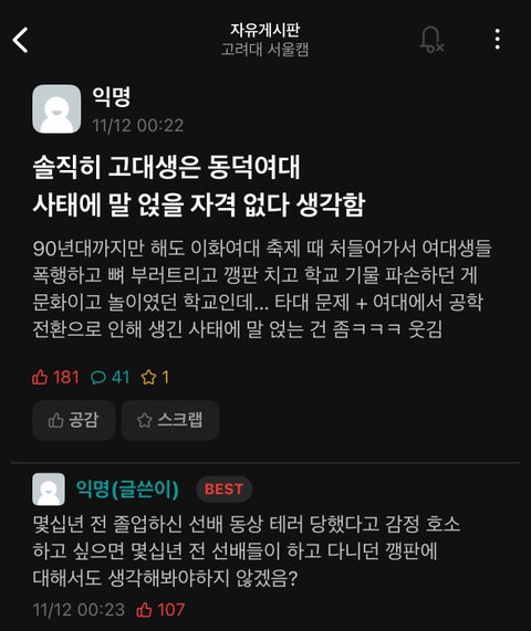 늘 본인들이 원인이면서 그에 맞는 대우를 받으면 여혐이라구욧!!! 외쳐댈 예정. 이래서 여대 안 보내려고 하는 거