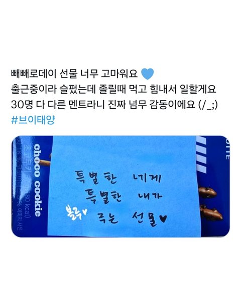빼빼로에 전부 다 다른 포잇 붙여서 나눠 줌