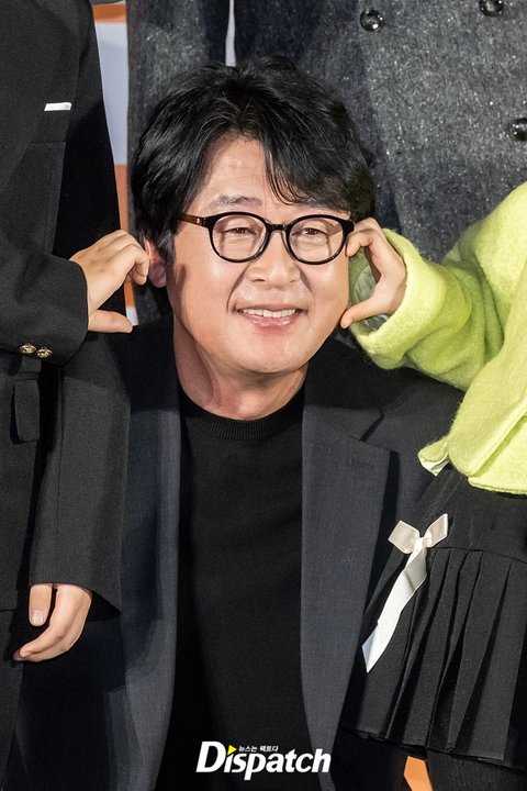 김윤석은 아역배우들의 볼하트 포즈에 미소를 지었다.