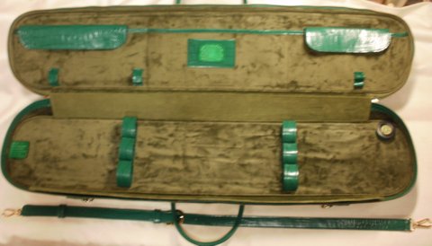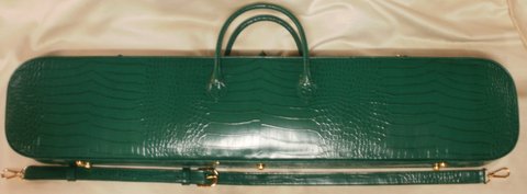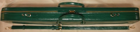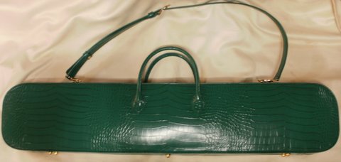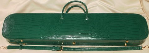 그린 컬러 악어 패턴 엠보싱 천연 가죽과 골드 도금 금속장식으로 럭셔리하게 제작한 대금가방(대금 케이스)입니다.(대금 3개 수납용,사이즈-가로 95cm,넓이19cm,두께 8cm)