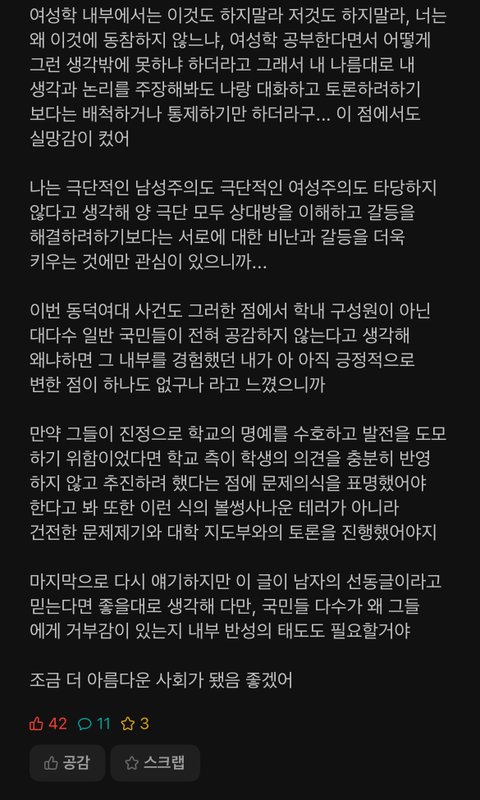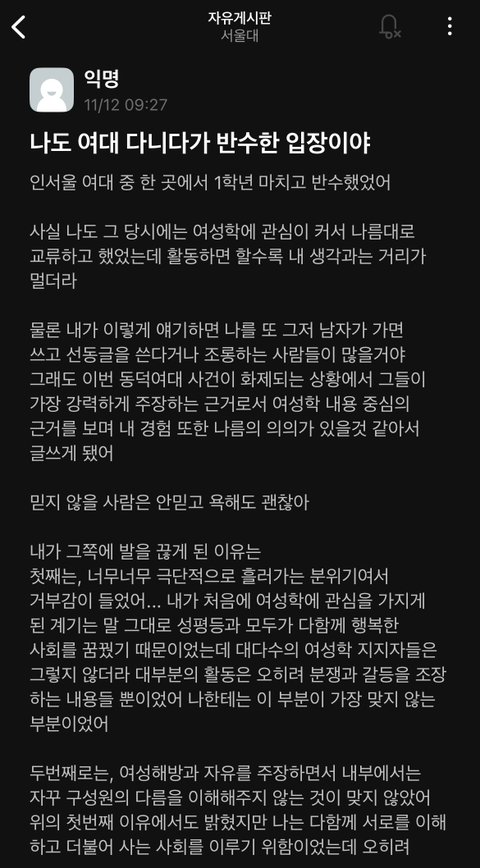 여대출신 서울대생의 입장...