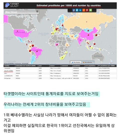 한국이 베네수엘라 다음으로 성매매 여성이 많다는말 인터넷에 많이 떠도는데 이 통계 출처가 타겟맵이라고 함