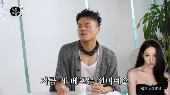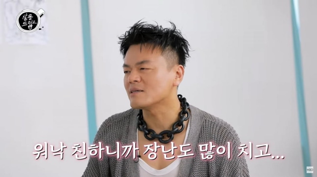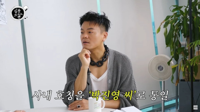 사진=유튜브 '살롱드립2'올해 52세인 박진영은 수평적 분위기를 위해 JYP 내 호칭을 '박진영 씨'로 통일했다. 20대 초반의 신입직원도 똑같다고 설명한 박진영은 "나는 '님'도 싫다. 미국처럼 이름 부르면 좋겠다"면서 "(안)소희는 JY라고 한다"고 밝혔다.
